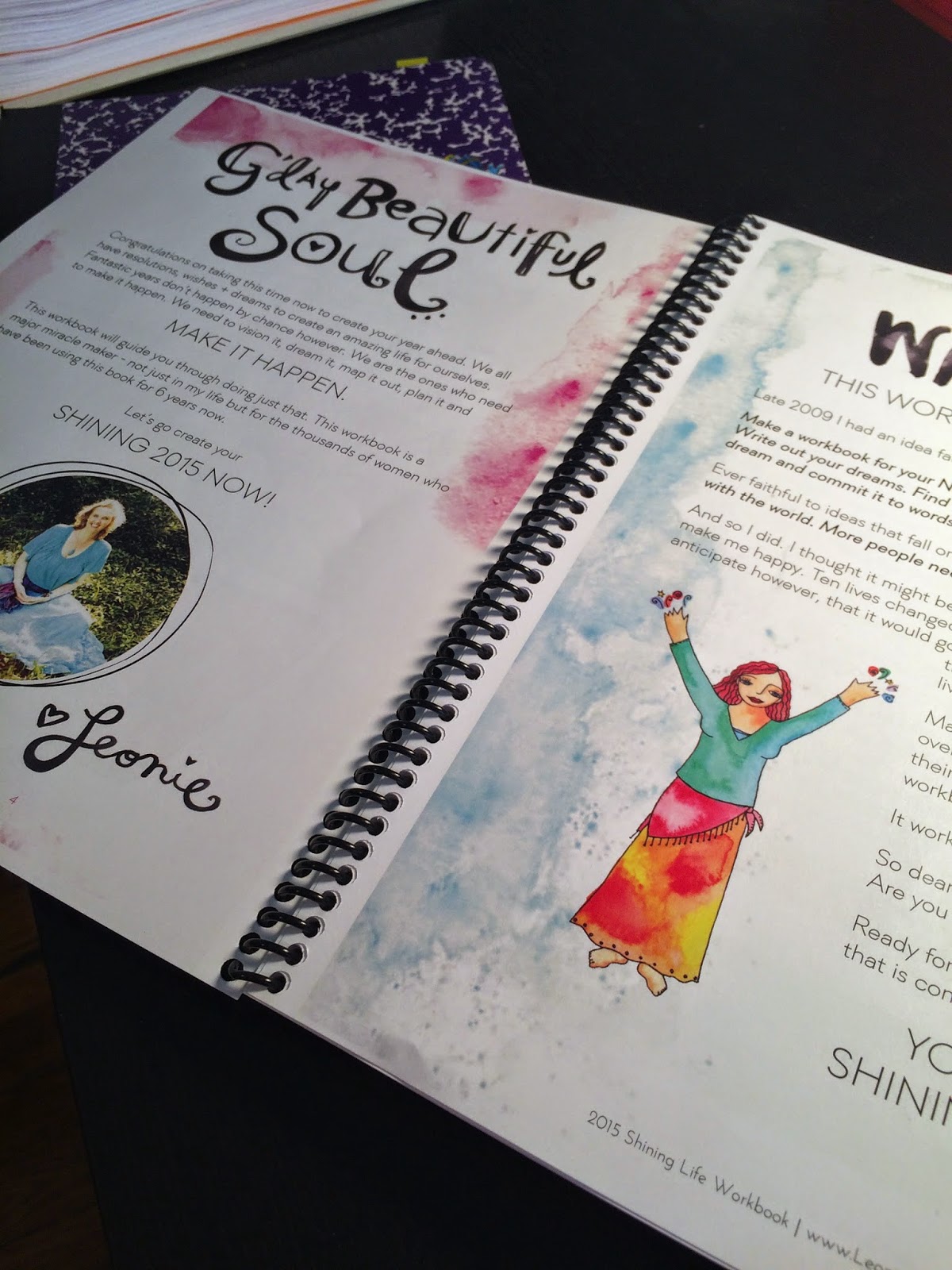 The second thing was finding Leonie Dawson’s awesome book 2015 Create Your Shining Year. It was a PDF download, but I also had it printed and spiral bound. I’m not sure why, but I love a good workbook with questions and blank areas for written answers, space to doodle and work out things. Especially if it’s bright and colorful – and this one definitely is!